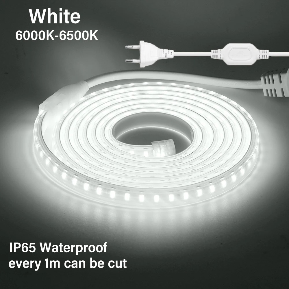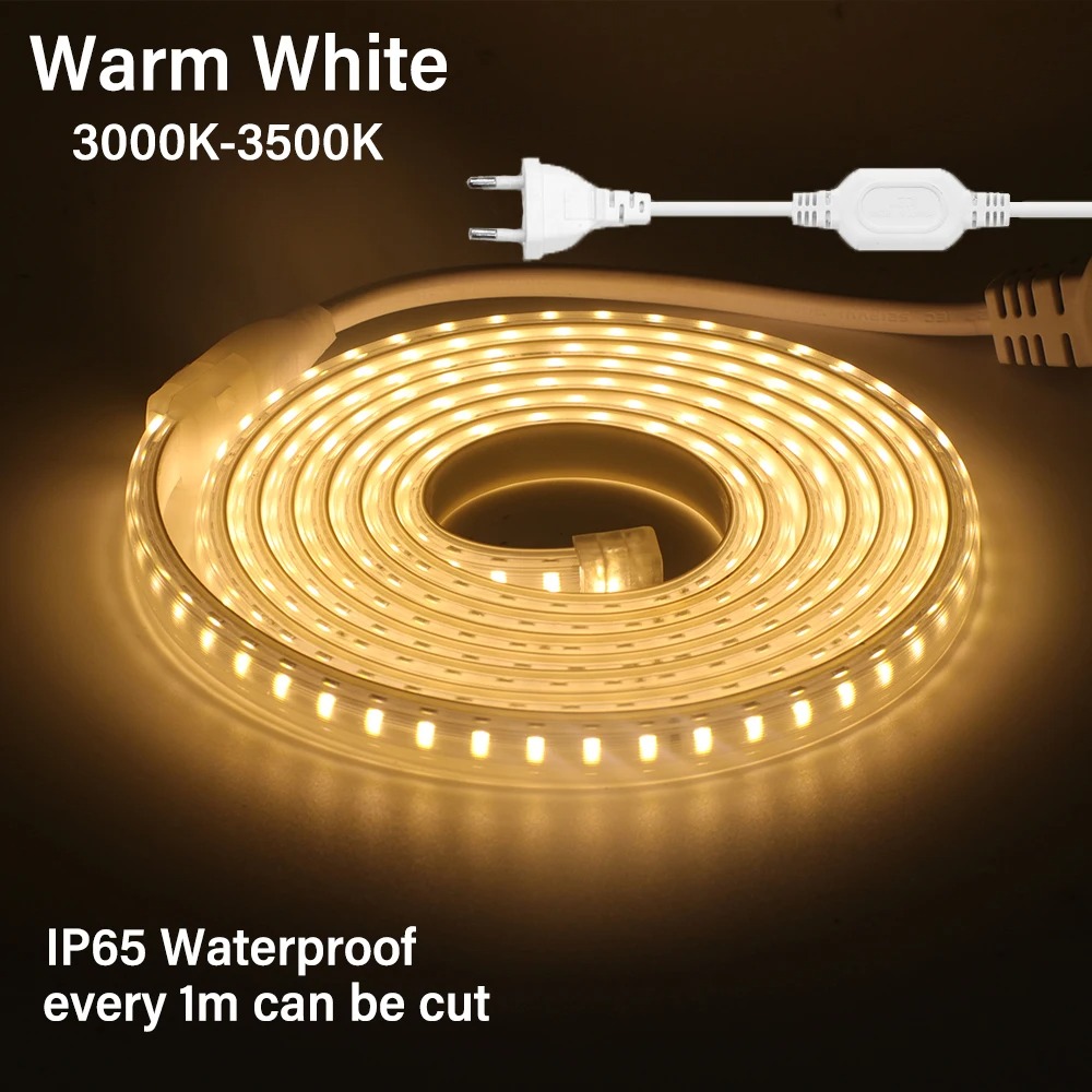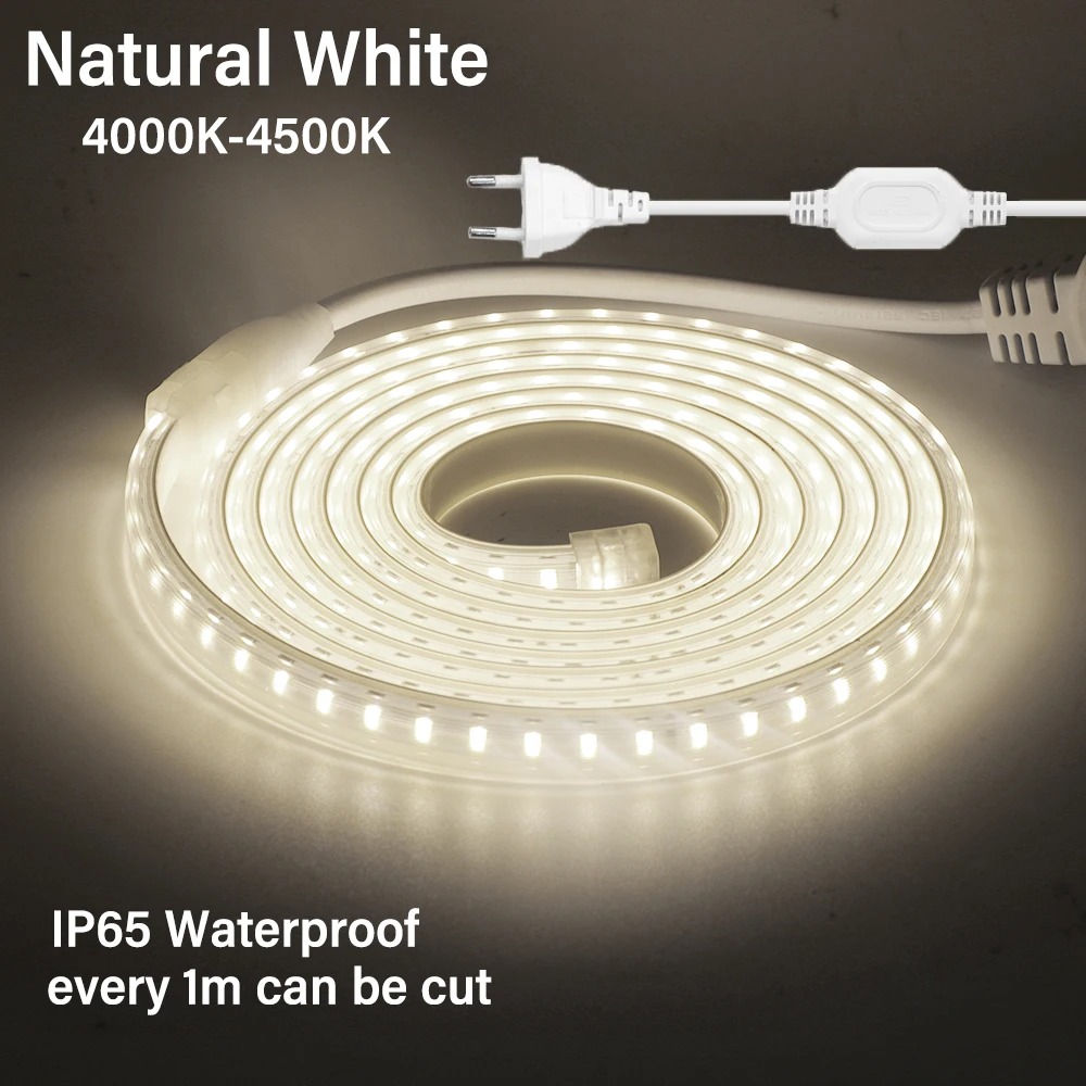 AC 220V 2835 LED Strip Waterproof LED Light Tape 120LEDs/M 3000K 4000K 6000K With EU Plug for Kitchen Outdoor Garden Lighting