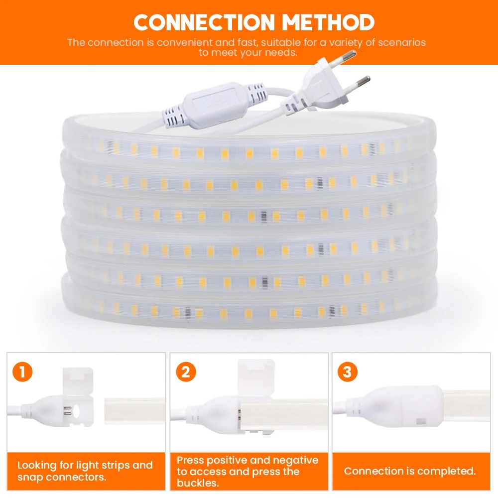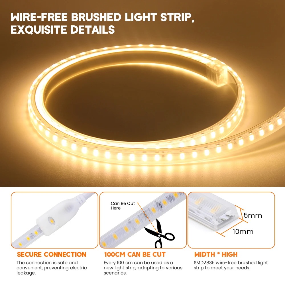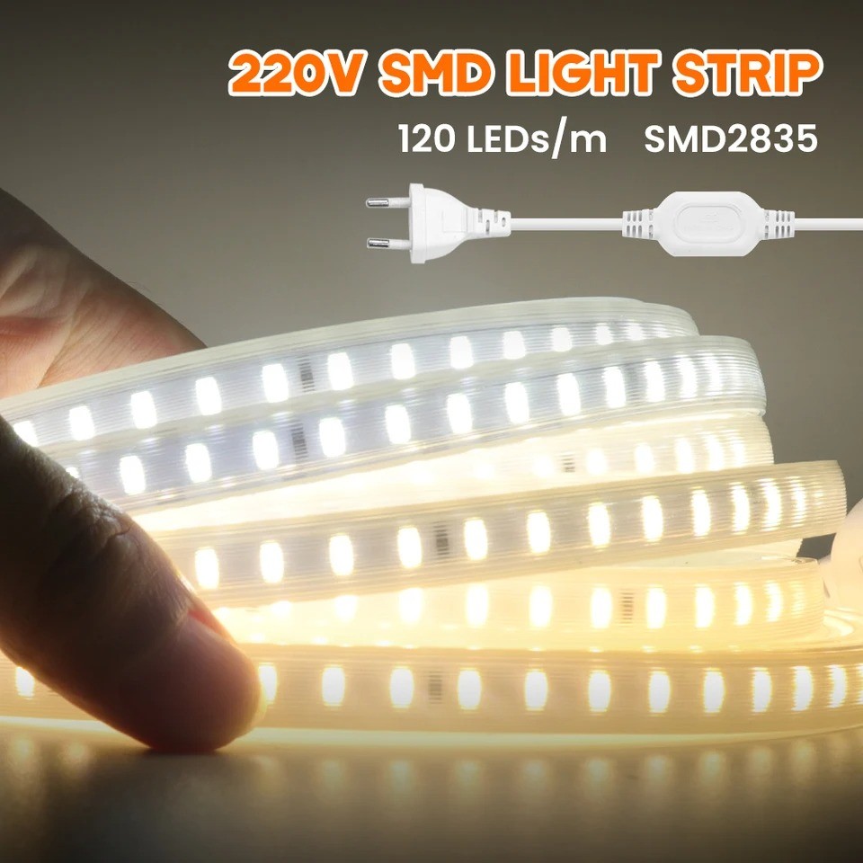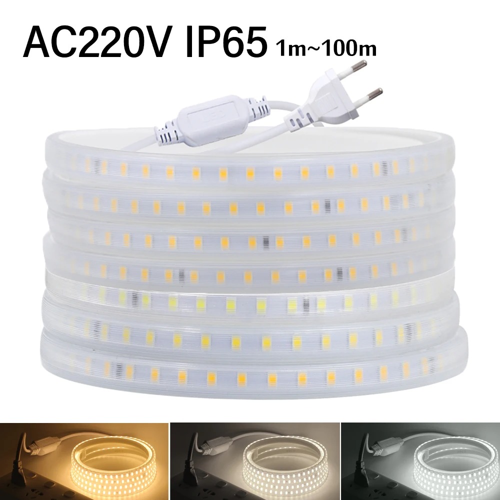 AC 220V 2835 LED Strip Waterproof LED Light Tape 120LEDs/M 3000K 4000K 6000K With EU Plug for Kitchen Outdoor Garden Lighting