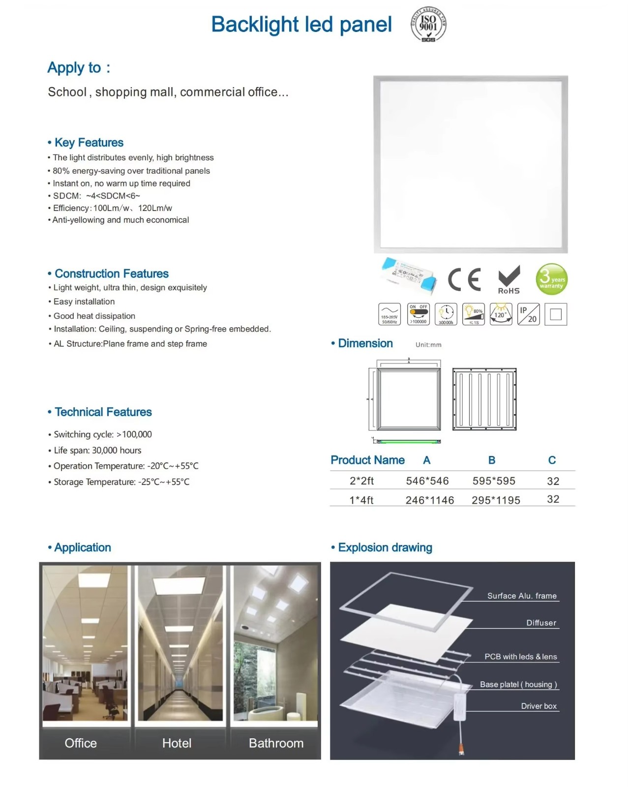 300*300 595*595 600*600 mm 36w 40w 42w 48w ceiling lamp led commercial panel light for office school factory