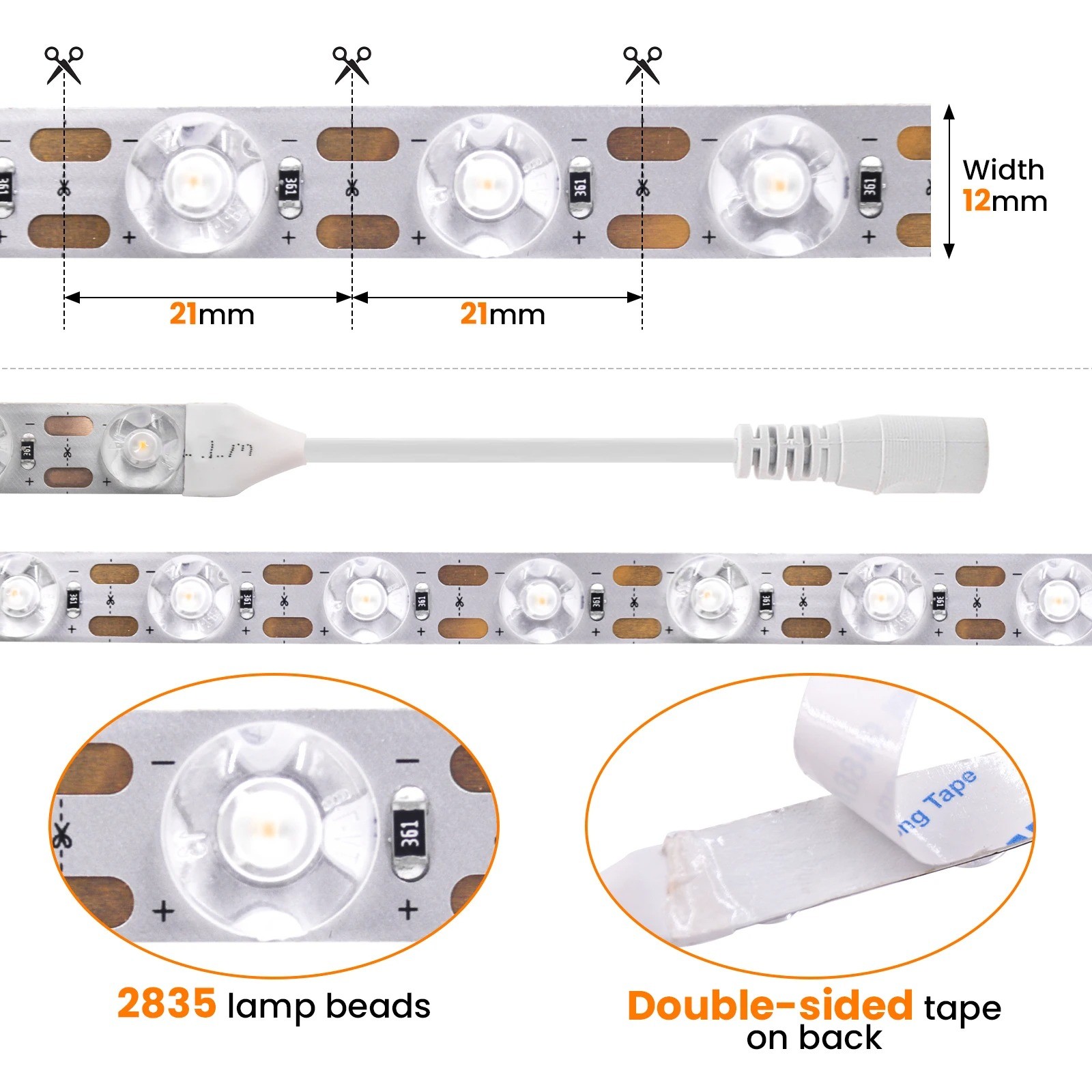 LED diffuser Strip Light 24V 2835 Flexible Backlight Tape with Diffuse Reflection Lens Extra High Brightness Cool White